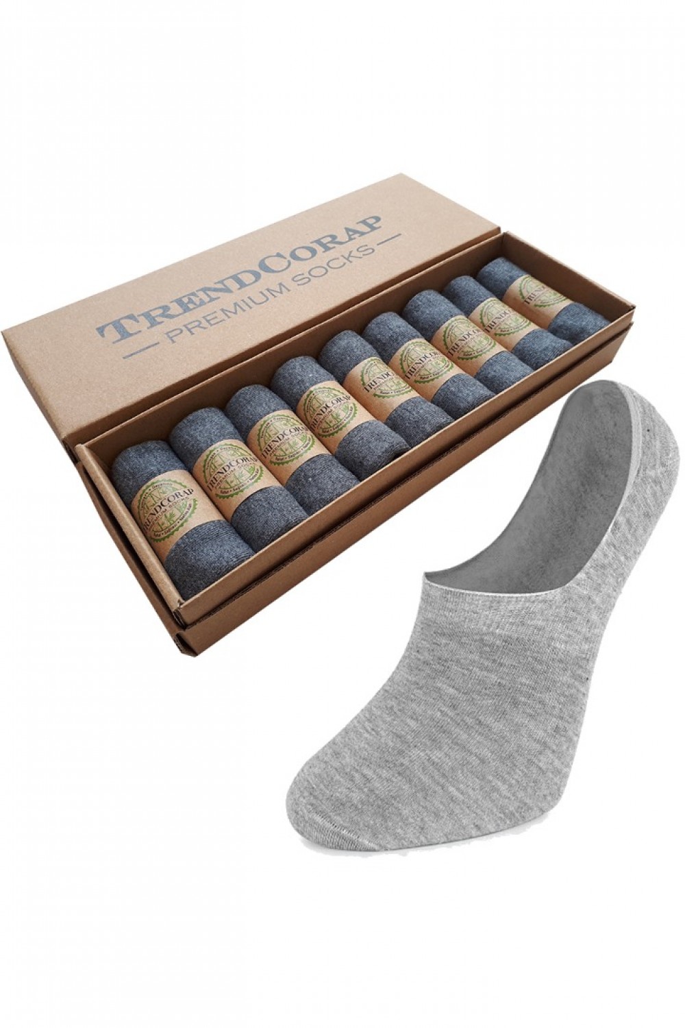 TrendCorap Premium Serisi 9 Çift Dikişsiz Burunlu Kaydırmaz Silikon Topuklu Bambu Babet Çorap, hem şık hem de fonksiyonel bir üründür. Bambu malzemesinin sağladığı doğal rahatlık, kaydırmaz silikon topuk ve dikişsiz tasarım ile ayak sağlığınızı korur ve gün boyu rahatlık sunar.